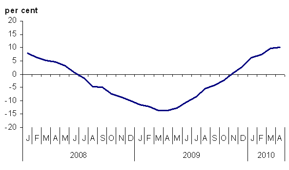 House prices were 10.1% higher in April 2010 than in April 2009, gaining 0.4% during March 2010 alone.